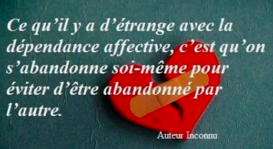 Dans ma vision, quand on est dépendant affectif, on vit à travers le regard des autres. On est incapable d’être bien sans la présence de l’autre, on est incapable de prendre des décisions seule … Souvent, on se cache derrière les autres et on sombre peu à peu dans la passivité.