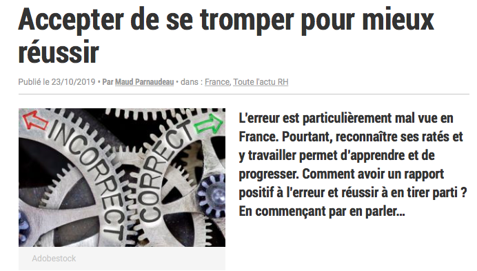 Comme l'écrit Max Piccinini dans un article des "Clés de la réussite / Echouer et surtout échouer mieux !"'